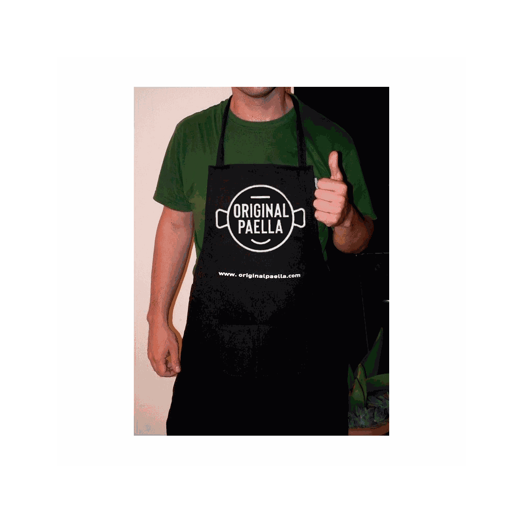 Disfruta realizando tus paellas con nuestro delantal oficial de Original Paella, librate de manchas y quemaduras mientras proclamas a todo el mundo tu amor por la paella original.