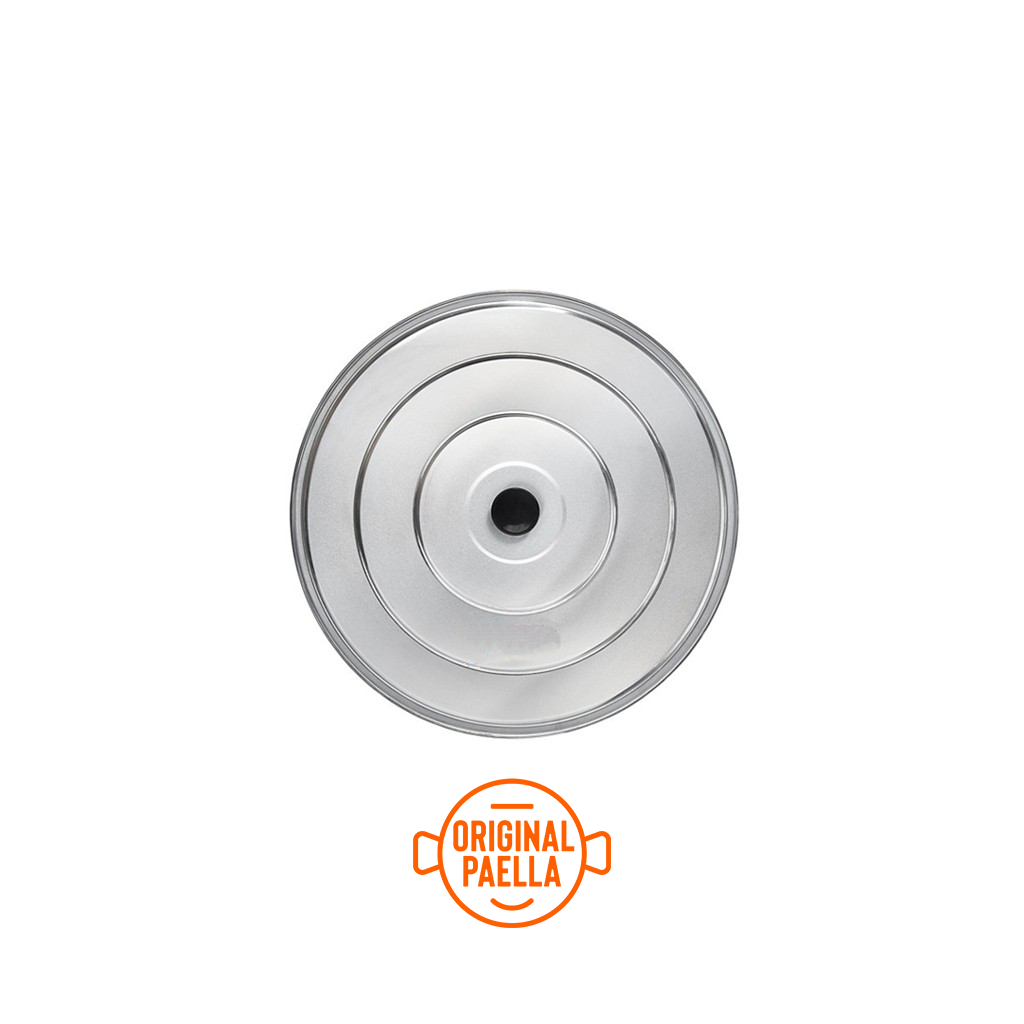 Tapa de aluminio 50 cm, una gran ayuda durante la preparación de la paella, nos permite evitar salpicaduras, cubrir la paella durante su reposo o nos puede ayudar a atrapar el vapor para asegurar una propagación del calor correcta.