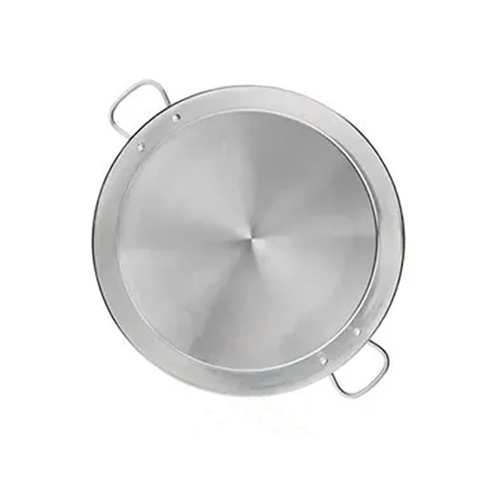 - Paella de Acero inoxidable de 46 cm con fondo termodifusor y espesor reforzado para todo tipo de fuegos, no se oxida.